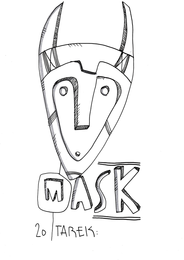 Poscas sur Papier, 24x32cm // L’idée de customiser des masques ou d'en peindre n’est pas récente dans le travail de Tarek puisque il avait déjà réalisé quelques pièces dès 2010. Lors de son séjour au Cameroun, en 2017, il a peint des murs dans des écoles au ministère du tourisme. Il a également partagé sa passion avec d’autres peintres camerounais qui ont participé aux fresques murales. Sur place, il a pu faire l'acquisition de nombreux masques africains qui ont été des sources d'influence pour son travail. De retour en France, il a customisé une partie de ceux-ci et peint une grande série de toiles intitulée Masque(s) exposée à la galerie Philippe Gelot (Paris 4e) et à la galerie Kvasnevski (Paris 17e). Ce thème lui tient à cœur depuis longtemps que ce soit en peinture, en bande dessinée ou encore en muralisme.