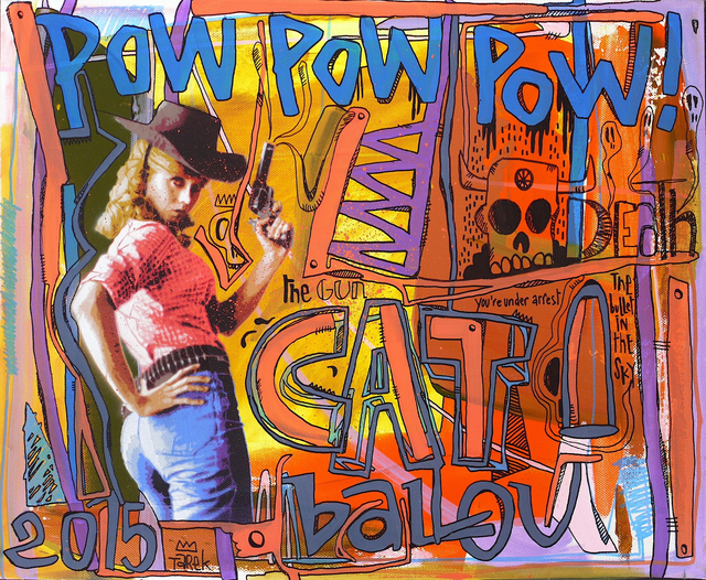 Poscas, pochoir de Mat Elbé et acrylique sur toile, 38x46cm, 2015 // La série Indians never die associe l'univers graphique de Tarek avec celui des Amérindiens que ce soit au niveau des symboles ou des portraits.