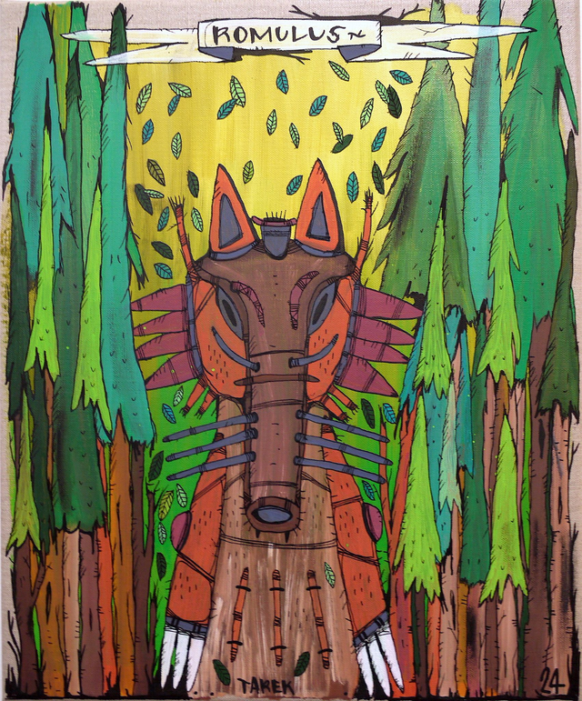 Acrylique et poscas, 46 x 38 cm, 2024 // L’idée de customiser des masques ou d'en peindre n’est pas récente dans le travail de Tarek puisque il avait déjà réalisé quelques pièces dès 2010. Lors de son séjour au Cameroun, en 2017, il a peint des murs dans des écoles au ministère du tourisme. Il a également partagé sa passion avec d’autres peintres camerounais qui ont participé aux fresques murales. Sur place, il a pu faire l'acquisition de nombreux masques africains qui ont été des sources d'influence pour son travail. De retour en France, il a customisé une partie de ceux-ci et peint une grande série de toiles intitulée Masque(s) exposée à la galerie Philippe Gelot (Paris 4e) et à la galerie Kvasnevski (Paris 17e). Ce thème lui tient à cœur depuis longtemps que ce soit en peinture, en bande dessinée ou encore en muralisme.